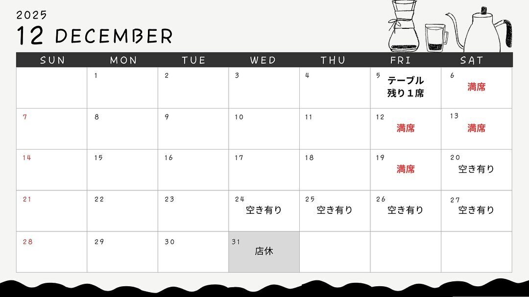 12月は忘年会シーズンという事もあり、週末は満席の日が多くなってきてます