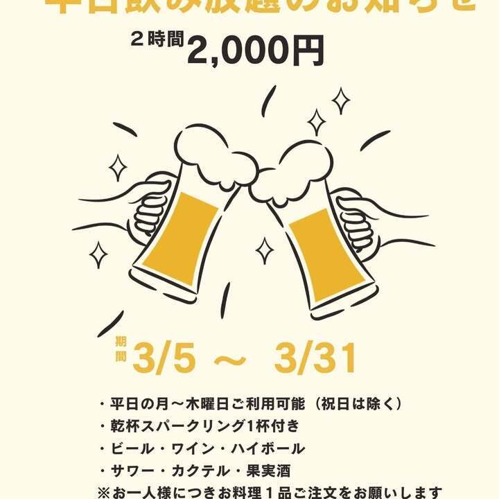 平日限定 単品飲み放題スタート!